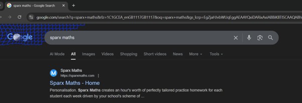 To access the website, type ‘Sparx Maths’ into your web browser: