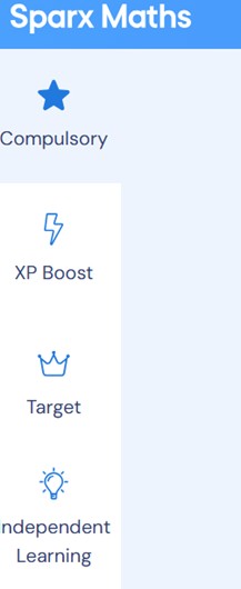 The student will also have access to other tabs which are optional, ‘XP Boost’ will be more practise of the same skills and ‘target’ is questions that will stretch their learning. If the student would like to do additional learning at home, they can complete either of these but it is not compulsory. The final tab is ‘Independent Learning’ in which students can search for any topic they feel they want to improve on.